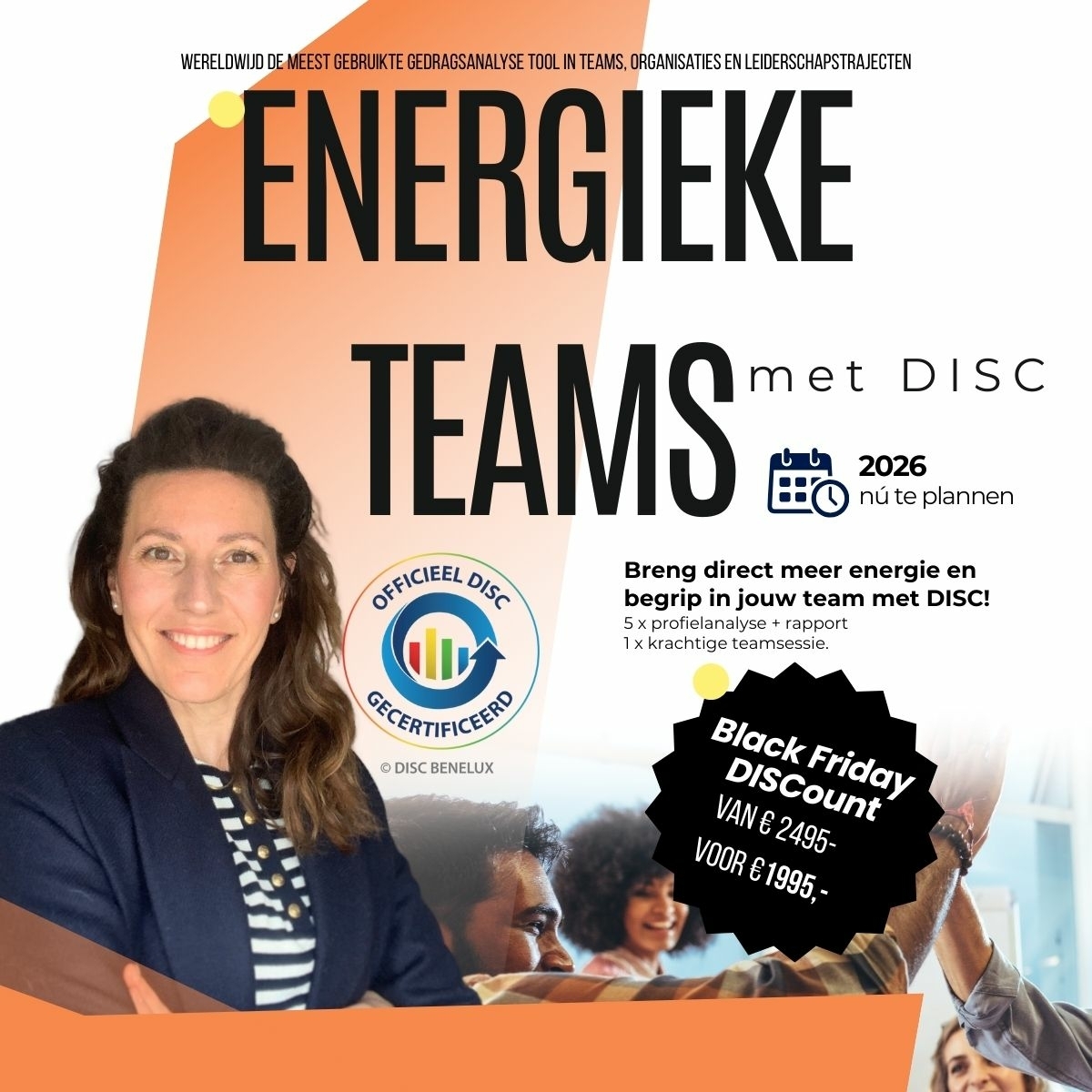 Ontvang voor ieder teamlid een DISC-analyse + persoonlijk rapport en versterk jullie samenwerking in één krachtige teamsessie van 2,5 uur.